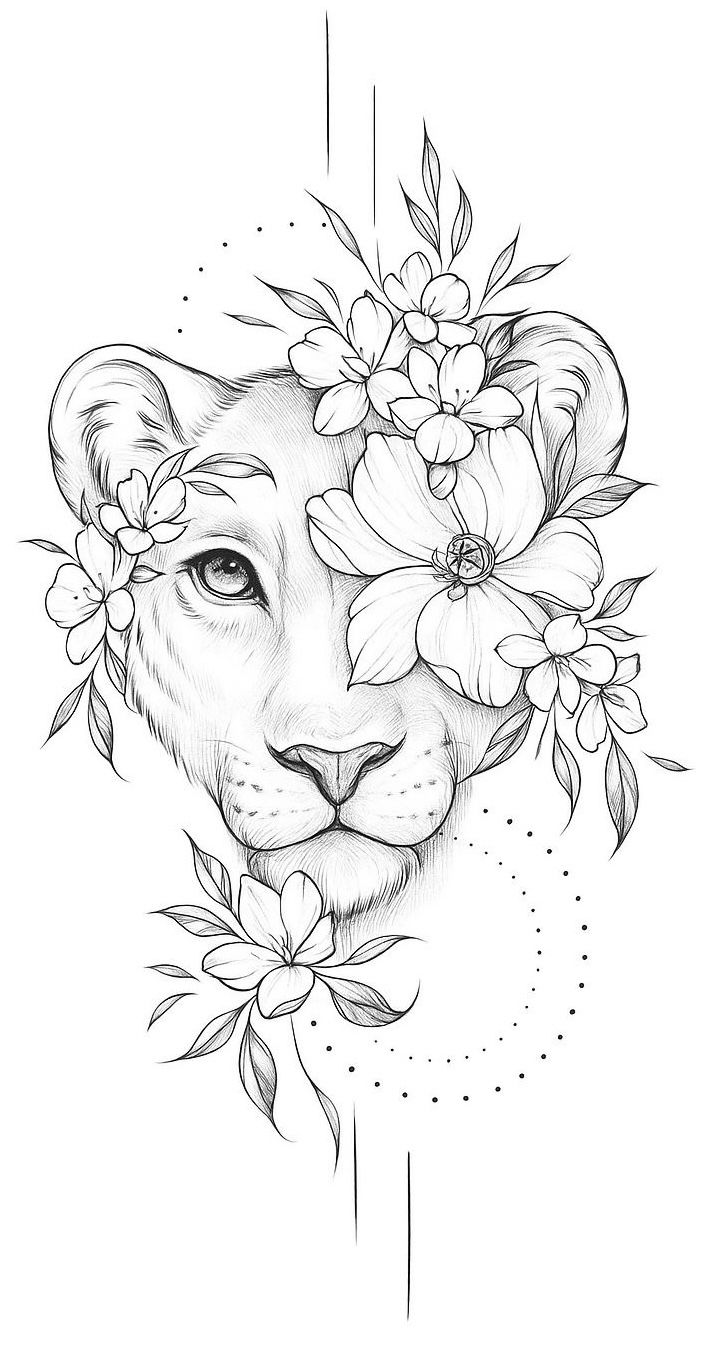 Lion with Flowers Tattoo